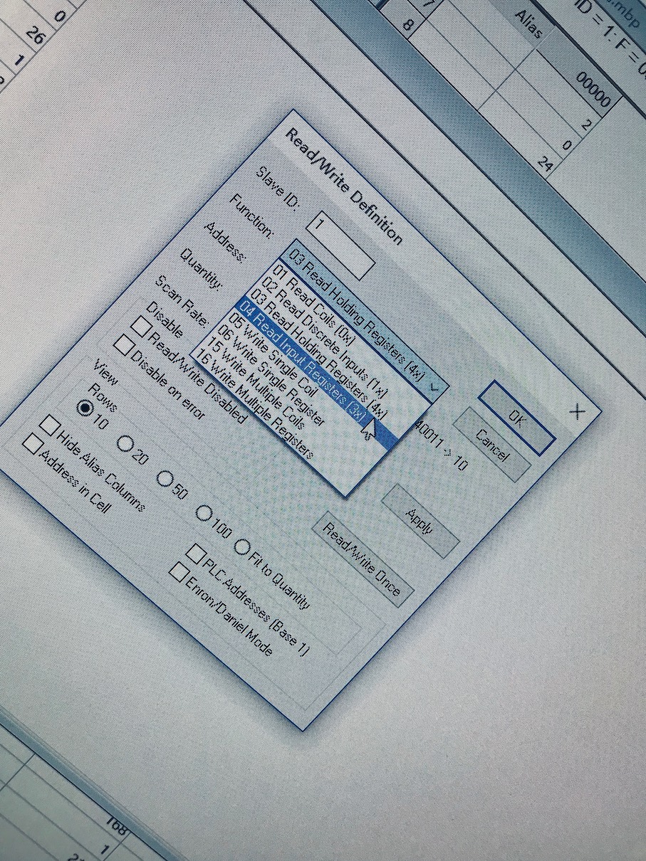modbus协议地址可以通过在modbuspoll中设置Read/Write Definition来获取。